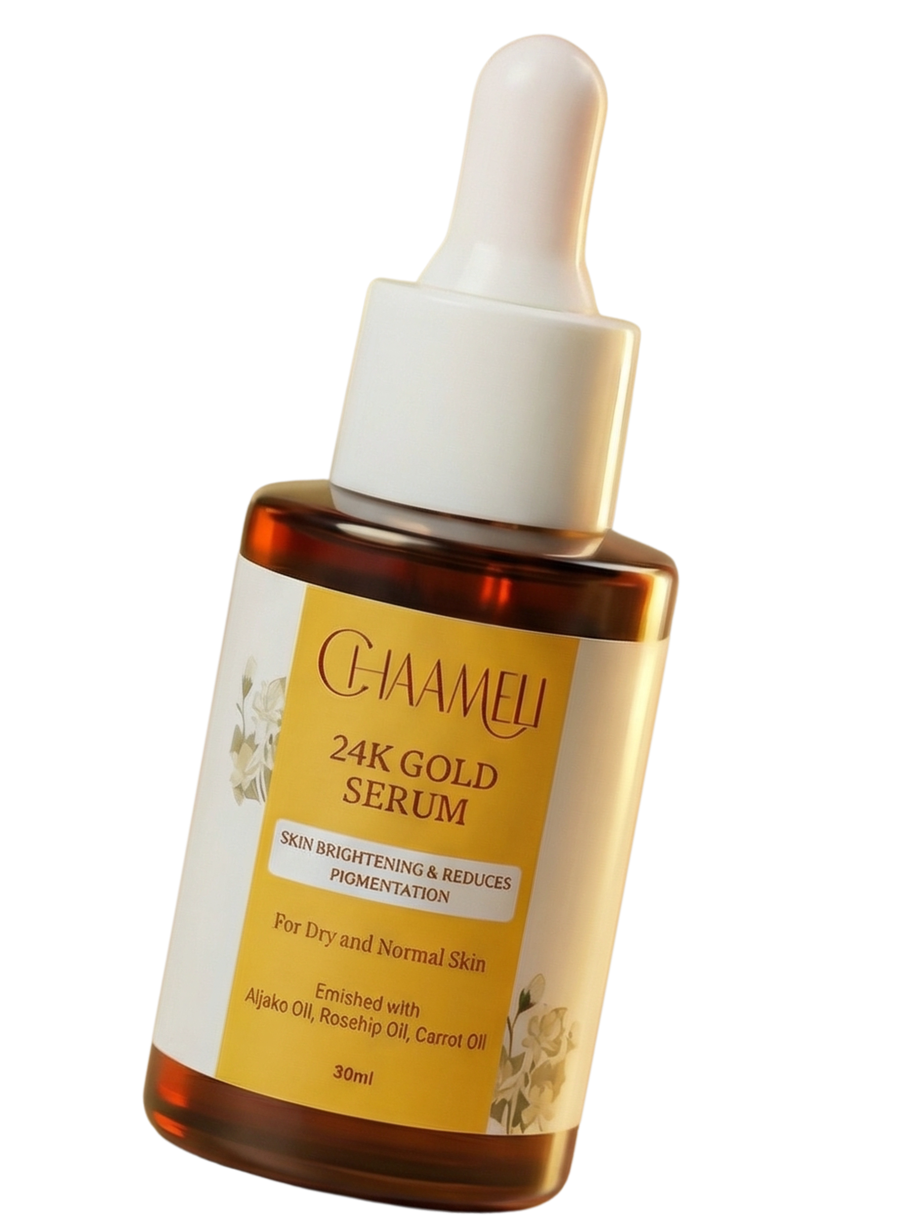 Handcrafted with saffron, real gold infusion, and time-honoured Ayurvedic botanicals our 24k Gold Serum is designed to give you visibly brighter, firmer, and younger-looking skin with every drop. Pure ingredients. Real results. Zero compromises.